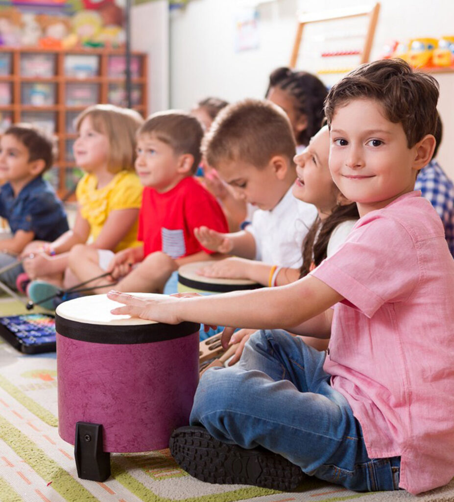 Ritim çubukları, davullar, ziller ve el çırpma gibi çeşitli araçlarla yapılan çalışmalar sayesinde çocuklar kendi beden seslerini ve çevresindeki sesleri fark etmeyi öğreniyor.